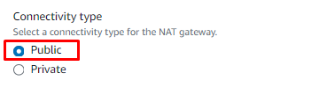 Step 6: For the Connectivity type, leave the default Public selection to create a