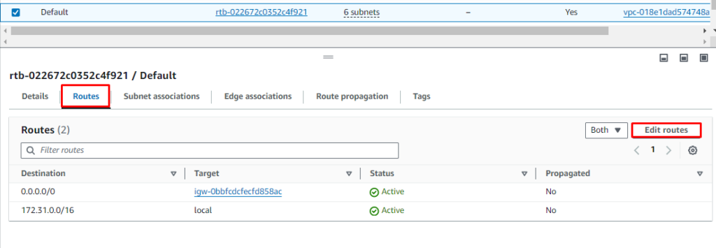Step 10: From the Routes tab, choose Edit routes.