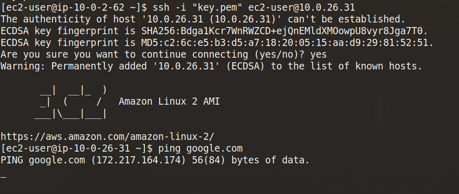 Step 13: Now, connect to an EC2 instance in the private subnet.