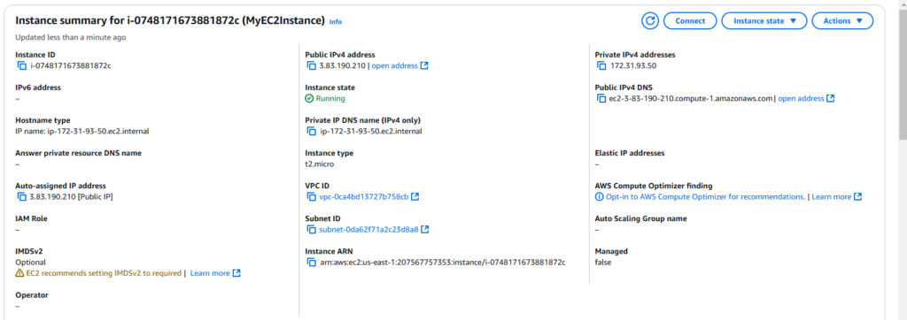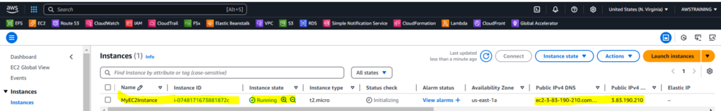 After Stack Complete you will see the below one instance has been created by script or you can say .yaml through cloud formation.
