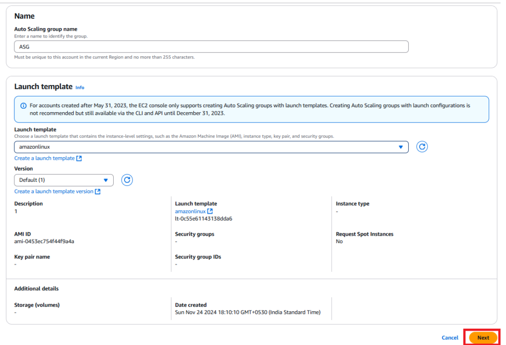 Step 7: On the Review page, choose Create Auto Scaling group.