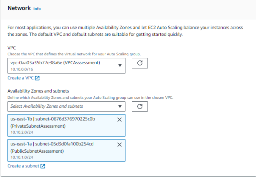 Step 5: Under Network, for VPC, choose a VPC. For Availability Zones and
