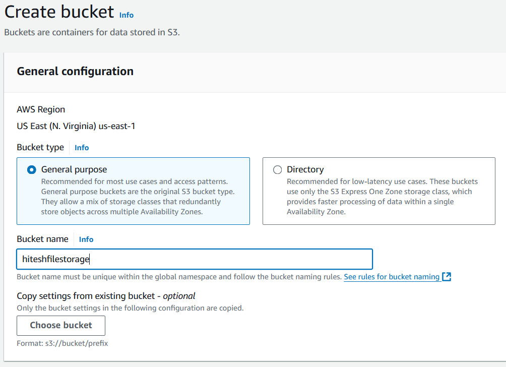 Provide the S3 bucket name it should be a unique name otherwise bucket will give you an error