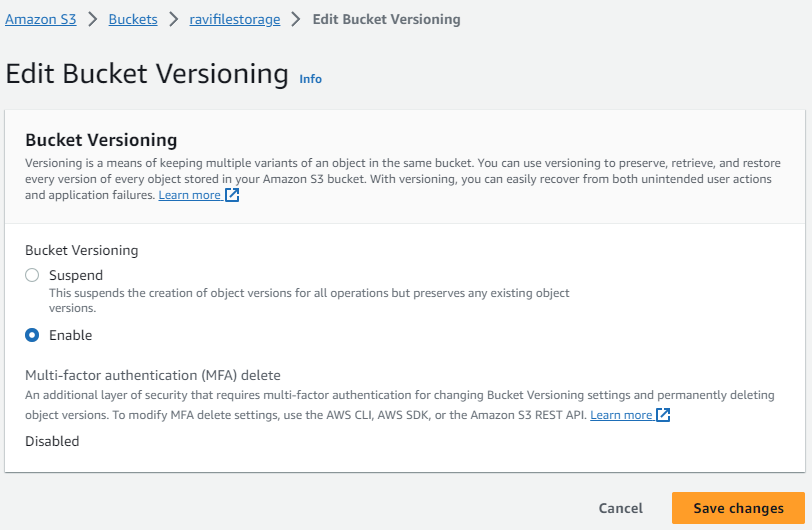 Once you enable the versioning you can’t disable, you can suspend the versioning.