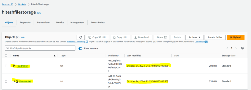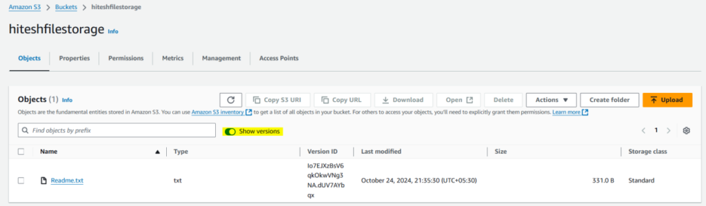 In case if you already have the bucket, click on the bucket name then it will go into the bucket properties