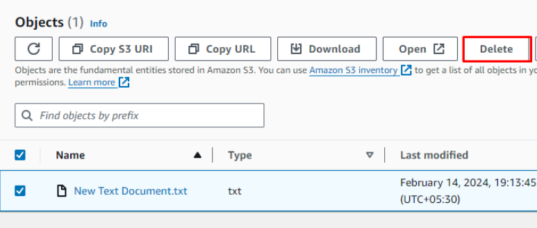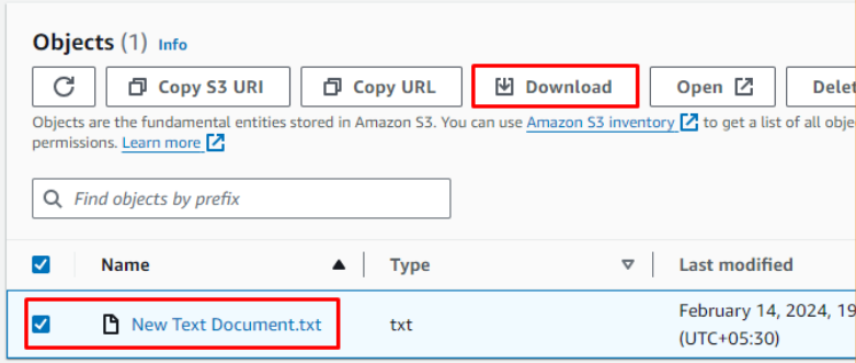 Step 8: You can download an object from an S3 bucket by selecting the check