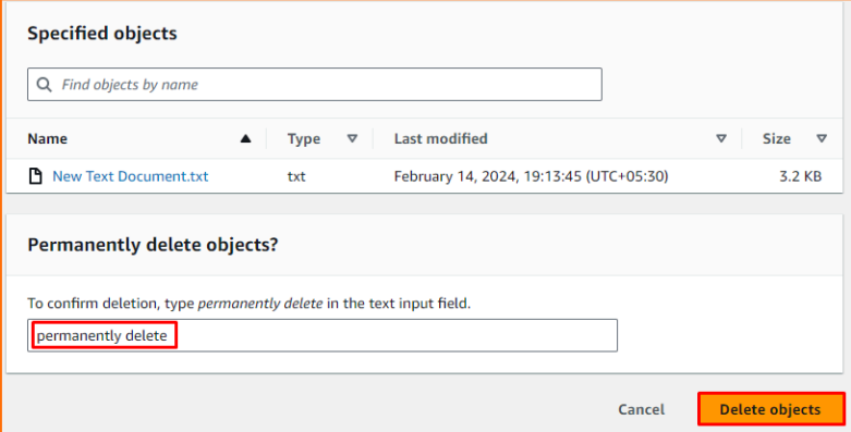 Step 11: On the Delete Objects page, type delete to confirm the deletion of your objects. Choose Delete objects.