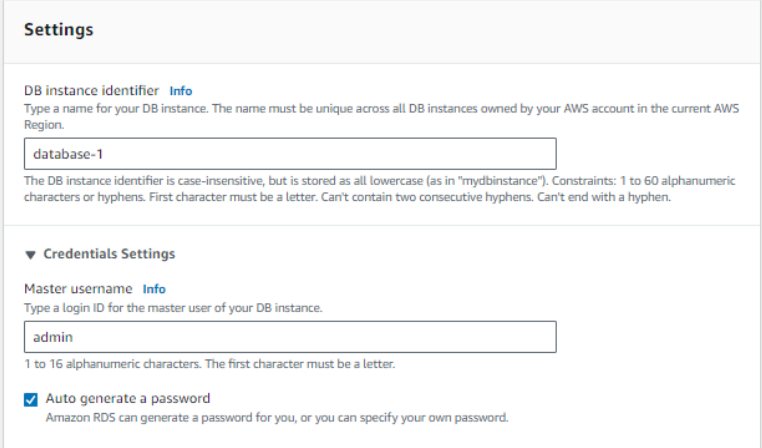 Step 4: Provide DB instance identifier, username and password.