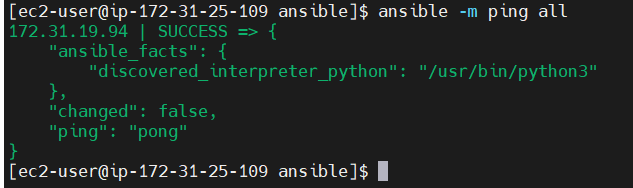 So in this case I used to ansible -m ping all command.so you will see like this output.