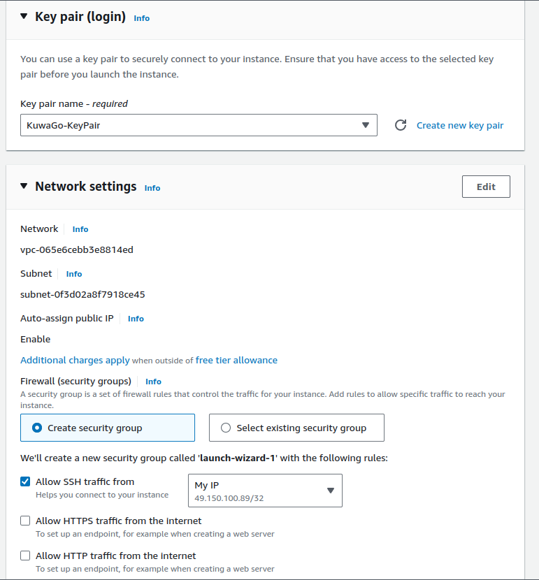 ▪ Ensure that Allow SSH traffic from is checked and is My IP