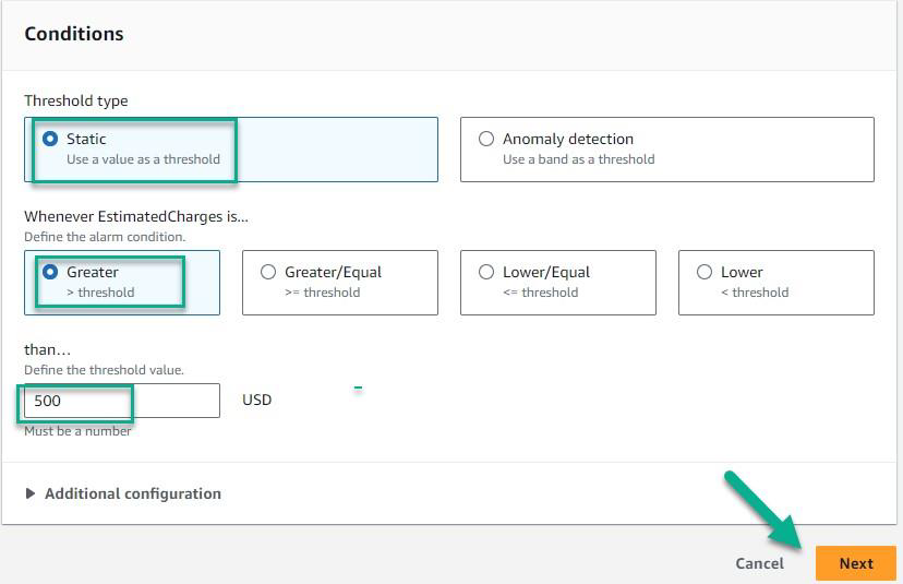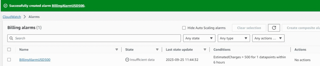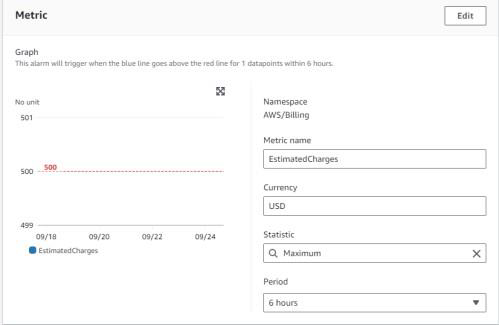 The alarm was Created successfully as per the requirement. Which will trigger the alarm when the usage of the AWS account reaches $500.