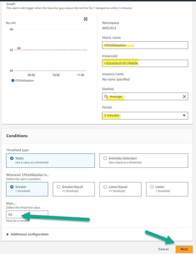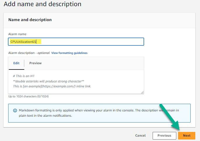 Creating an Alarm for CPU Utilization notification