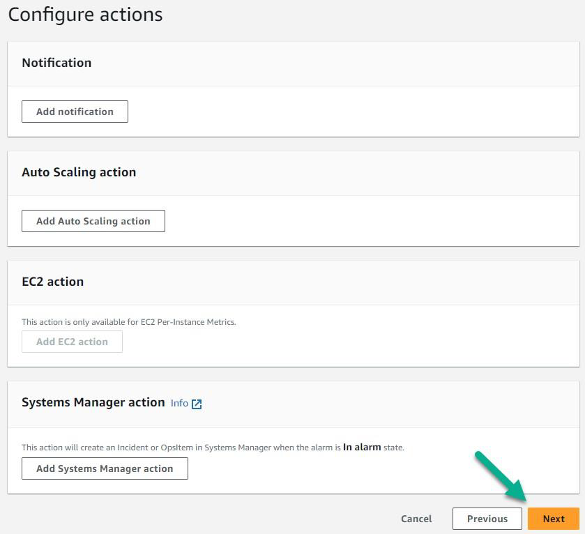Here's how to create a CloudWatch alarm in the AWS Management Console:
