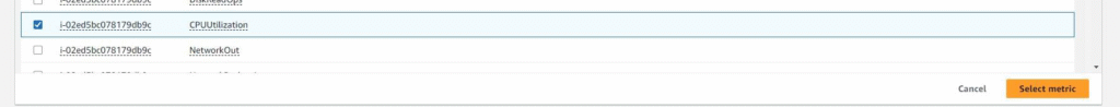 Select metric → EC2 → Per-Instance Metrics → CPU Utilization